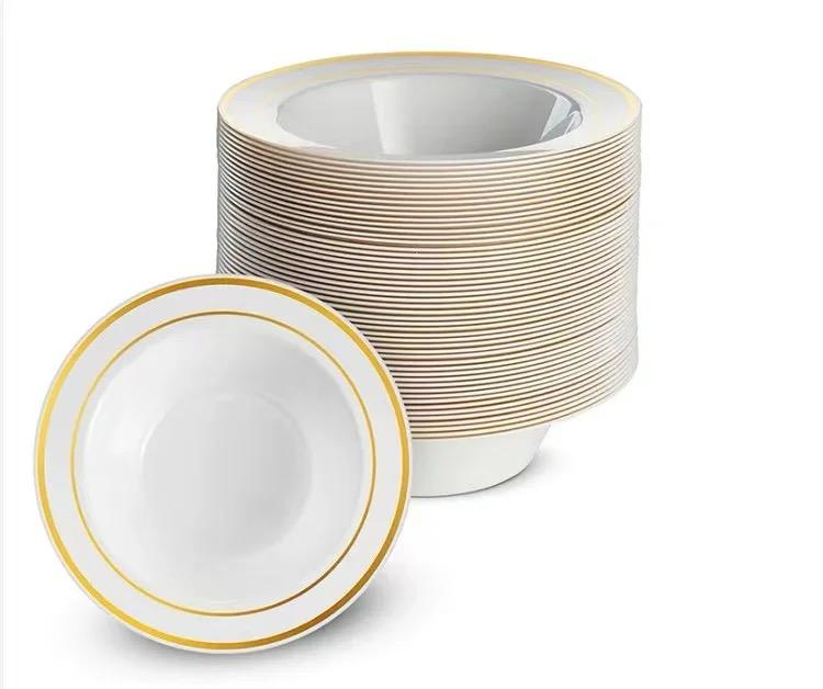 صحن بلاستيك مقوى ابيض/ذهبي عميق 20حبة