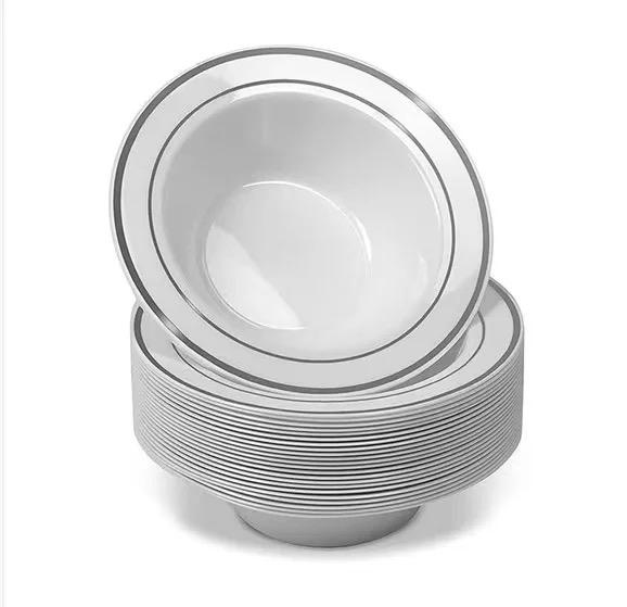 صحن بلاستيك مقوى ابيض/فضي عميق 20حبة