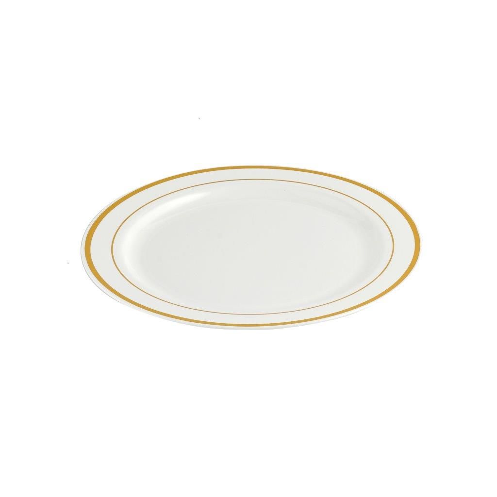 صحن بلاستيك مقوى ابيض/ذهبي 26سم 20حبة