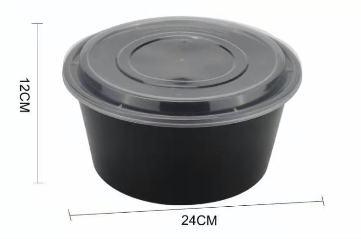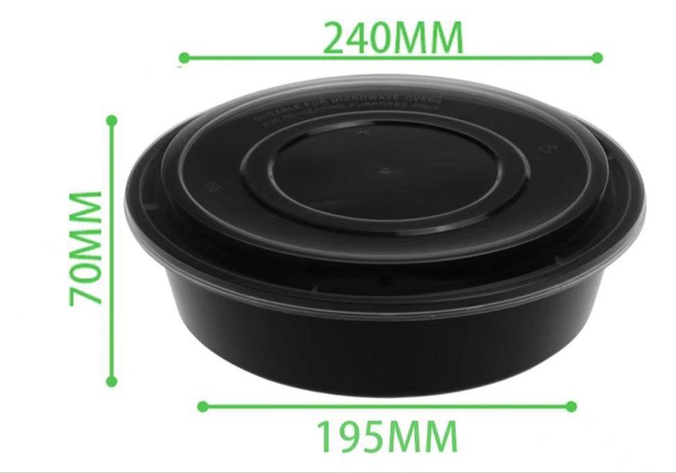 علبة ميكرويف دائري اسود عميق 2000مل 5حبة