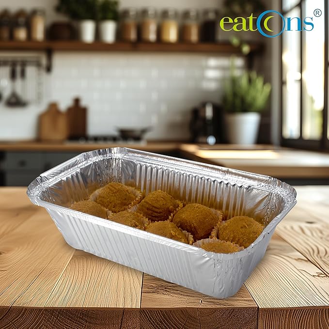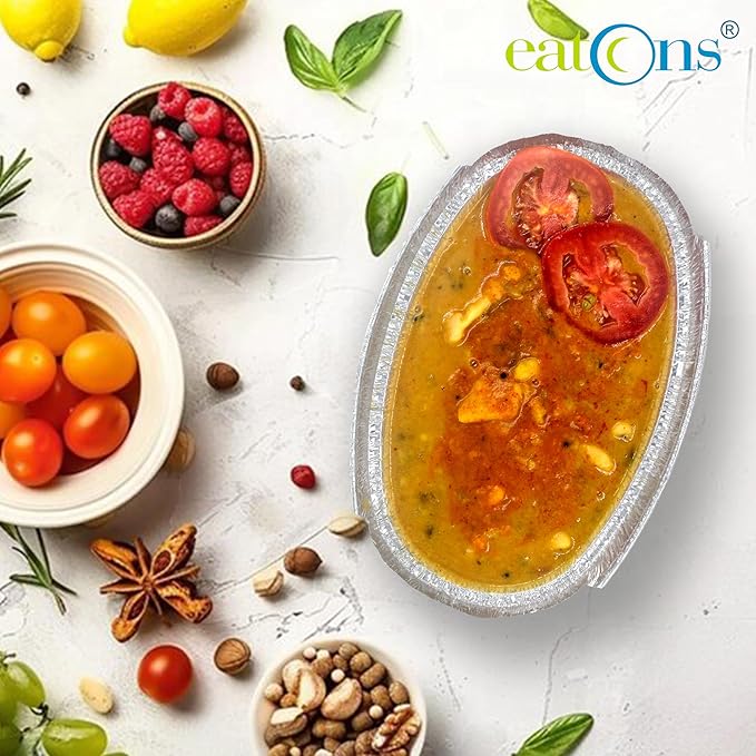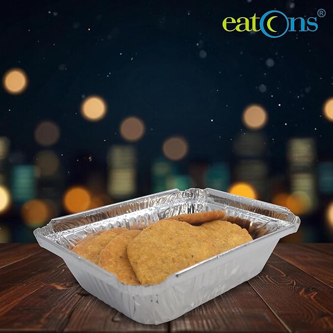 • Compact Packaging: These aluminium foil containers come in a pack of 25 and have a capacity of 600 ml, making them ideal for portion control and meal prep.